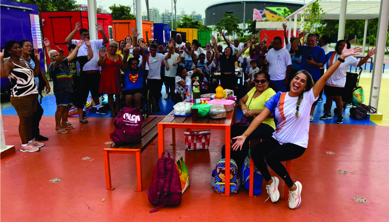 E, claro (!), o encontro das crianças, jovens e adultos foi emocionante demais! Executaram – juntos! – todas as atividades, como o circuito psicomotor. Além disso, houve o momento da dança: unidos, sorrindo e brincando uns com os outros. Na hora do lanche, foi lindo presenciar a amizade que ali estava sendo construída, dentre todos os presentes.