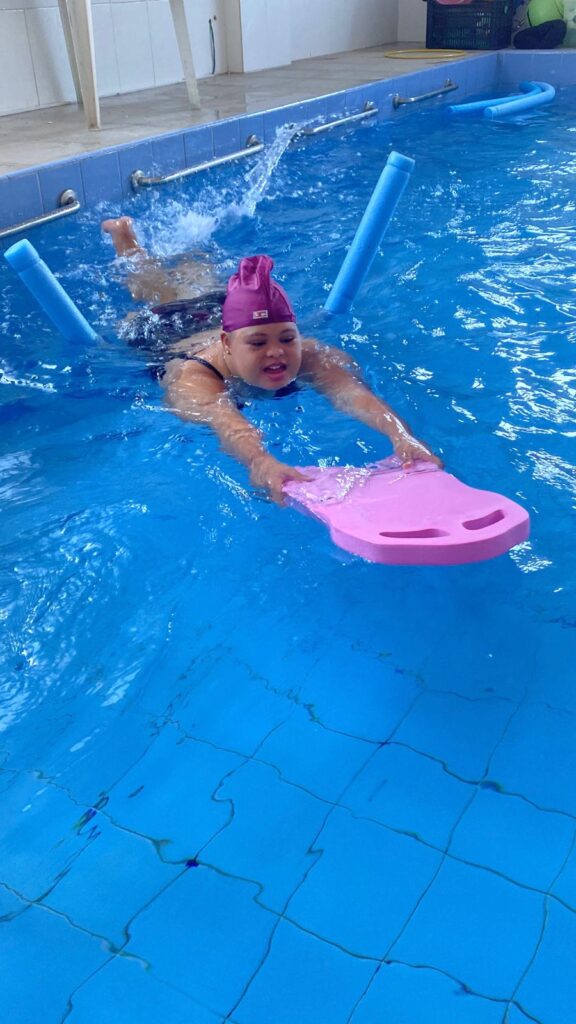 A Natação proporciona melhora da capacidade cardiorrespiratória, fortalecimento muscular, aumento da amplitude de movimento e melhora da coordenação motora. Além dos aspectos físicos, a prática regular está associada à: redução de sintomas como crises comportamentais, aumento da autoestima e melhora na integração social.